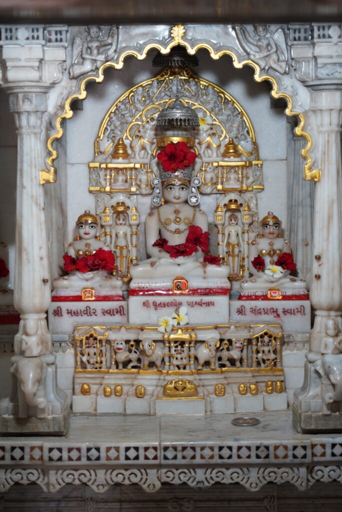 Shri Adinath Bhagwan and Shri Chandraprabha Swami are seated around Moolnayak Ghrutkalol Parshwanath Prabhu. The statue of Dada Adinath is installed in the temple behind the main temple.Lord Ajitnath and Lord Arnath are seated above. Four-faced statues of Lord Shri Jeeravala Parshvanath have been installed in a newly built temple in the complex. The ancient statues of Gautam Swamiji and Padmavati Mataji are also beautiful.